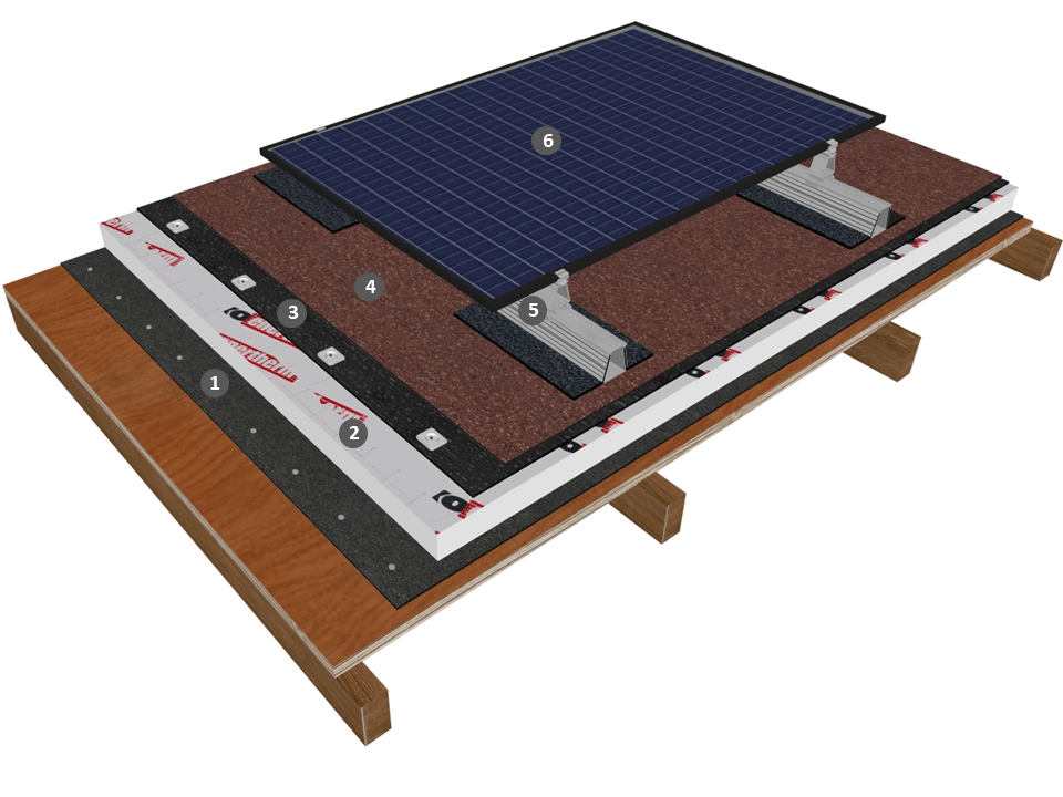 Procédé photovoltaïque à plat sur étanchéité bicouche fixée mécaniquement avec isolation