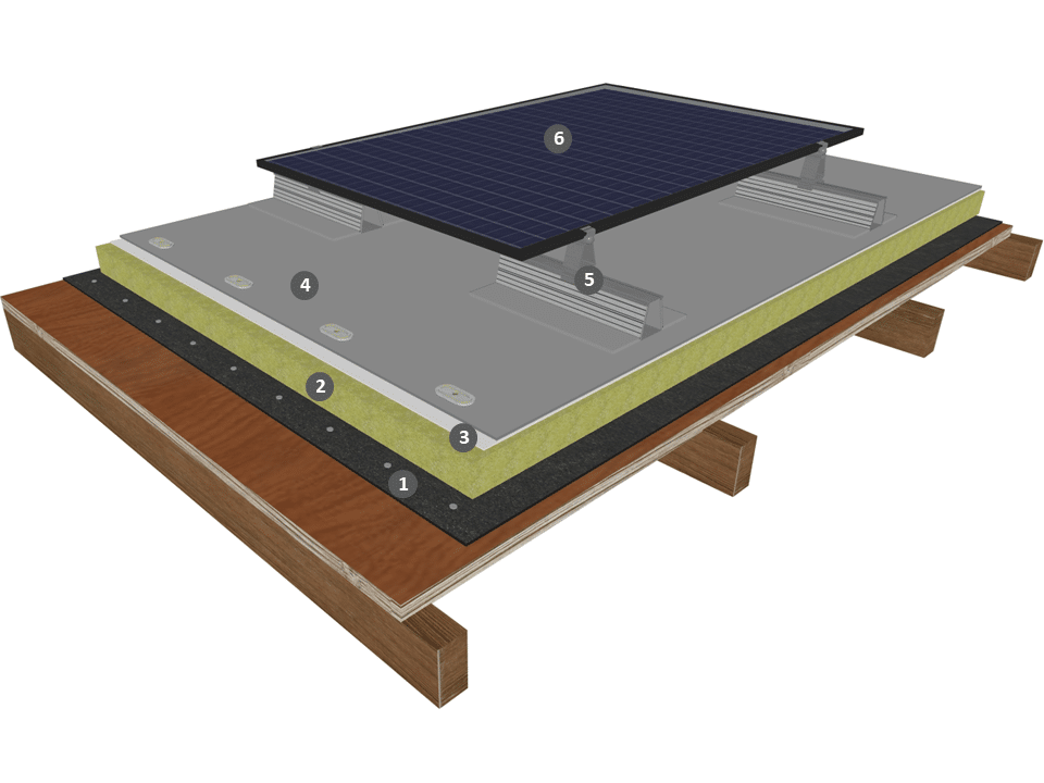 Procédé photovoltaïque à plat sur étanchéité monocouche pvc-p fixé mécaniquement avec isolation