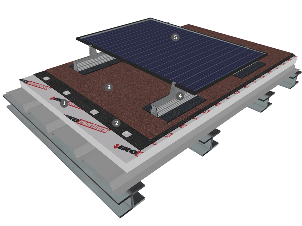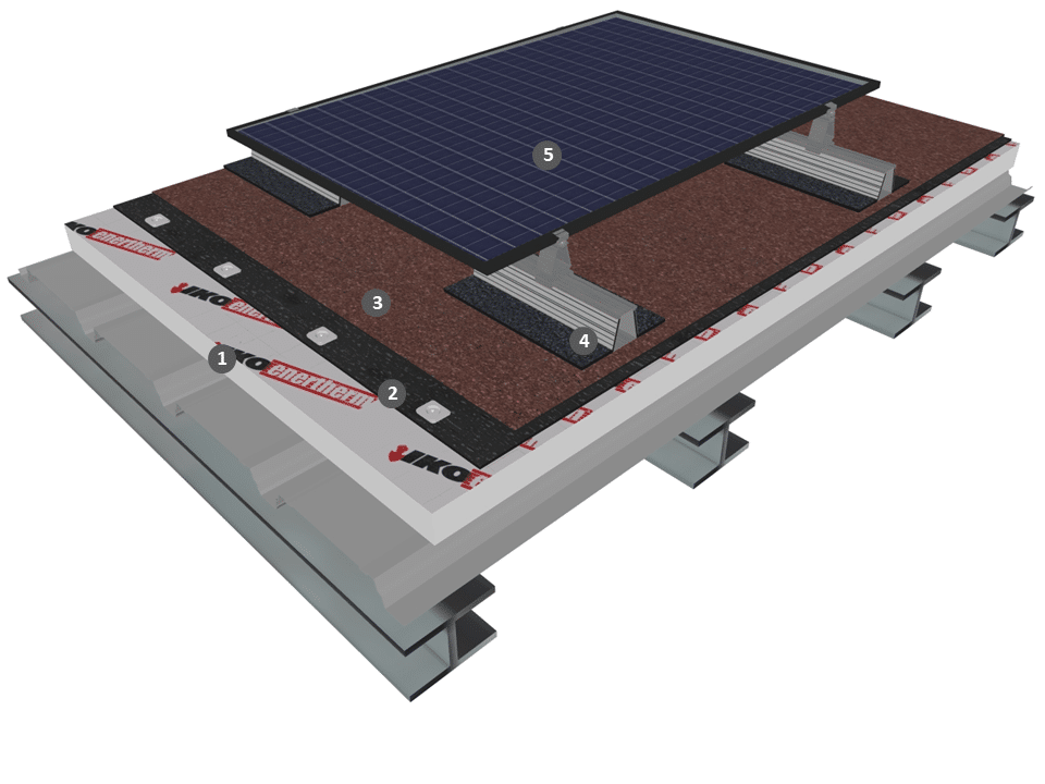 La mise en place des modules photovoltaïques et le raccordement électrique sont réalisés conformément à l’Avis Technique ROOF-SOLAR BITUME TAN DTU – Plat & Incliné et l’Avis Technique ROOF-SOLAR BITUME TAN GP – Plat & Incliné.